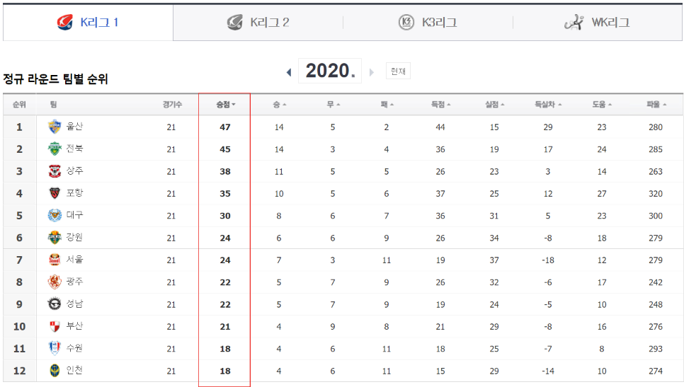 | 2020 K리그1 6위 싸움 (19라운드) (0) | 2020.09.08 |