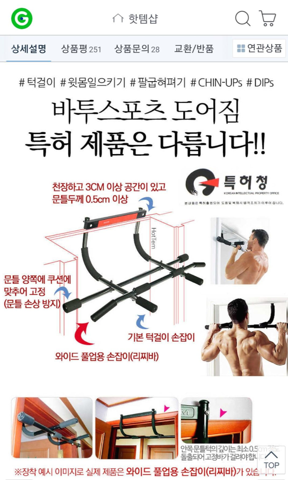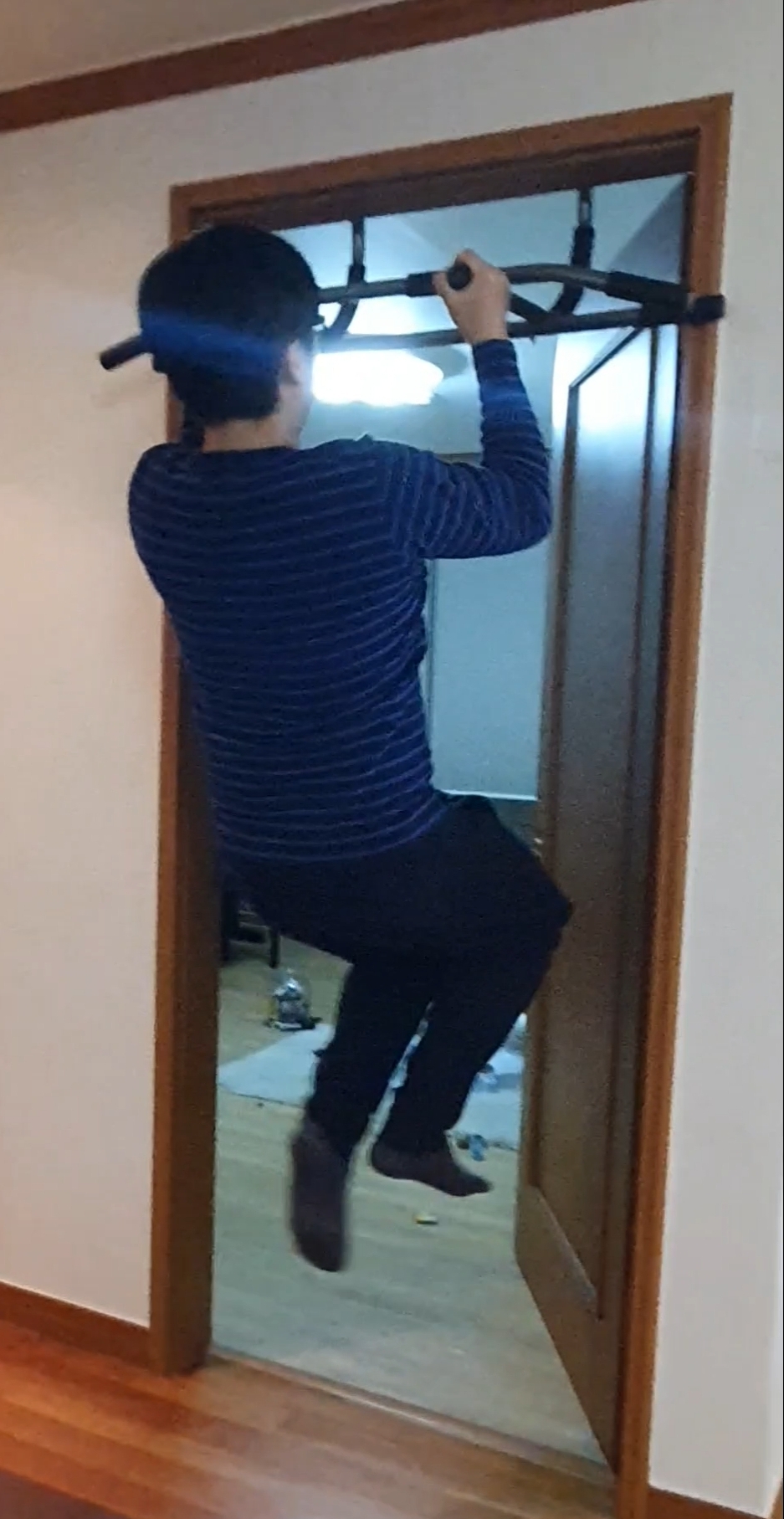1자 바라 풀업 초보에게 팔꿈치 가동 범위의 어려움이 있고, 문틀 이상으로 와이드 그립을 잡을 수도 없었음.