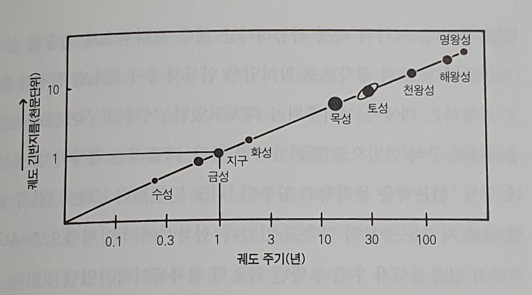 행성의 궤도에서 타원의 긴 반지름의 세제곱과 공전주기의 제곱의 비는 행성과 관계 없이 일정하다.