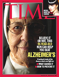 1980년대 미국에서 시행된 Snowdon의 수녀 연구(the Nun Study)에서는 678명의 수녀들이 자발적으로 사후 자신의 뇌를 기증하였는데, 101세까지 생존하였던 '메리' 수녀의 뇌는 많은 연구자들을 놀라게 했다.