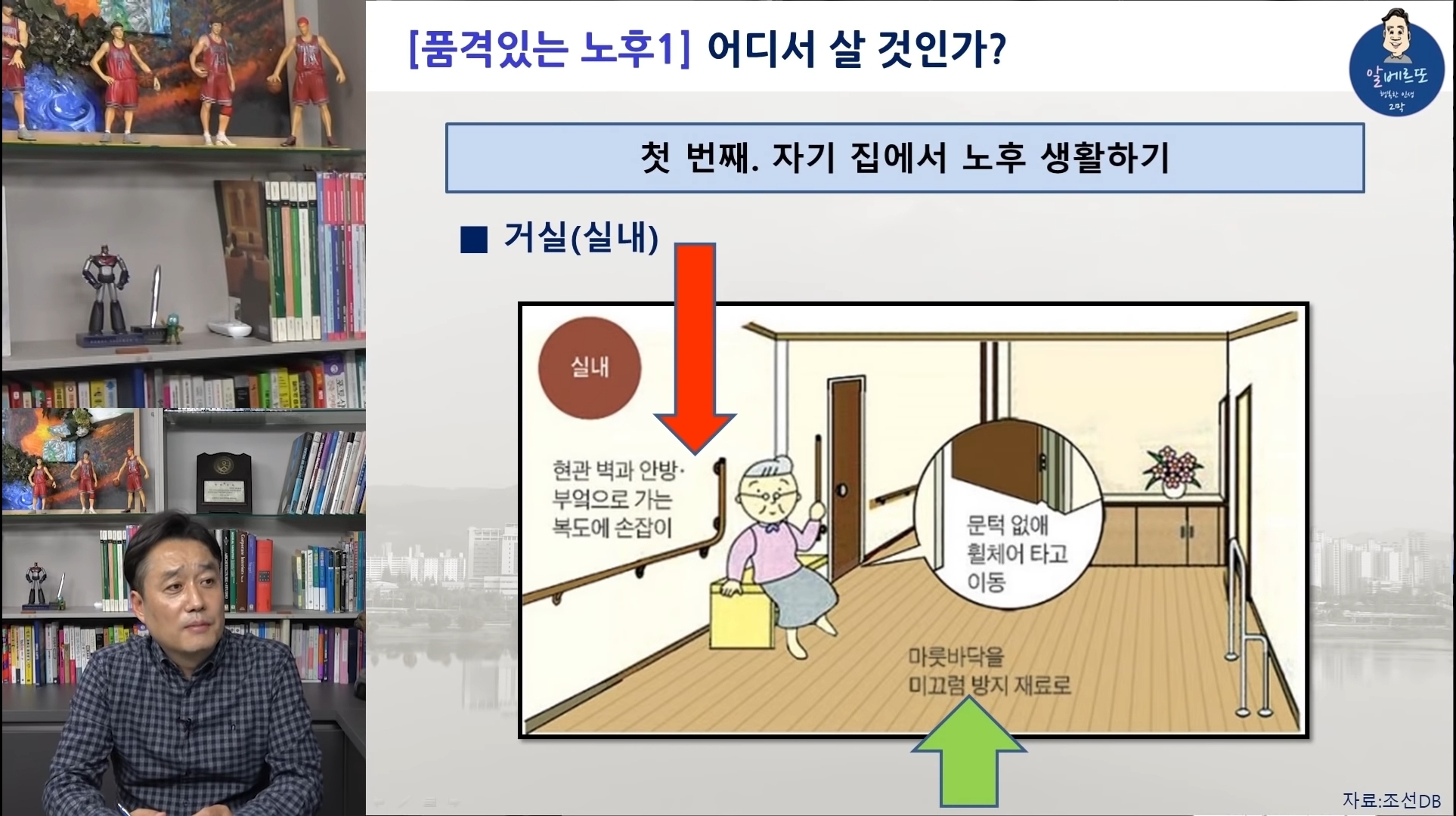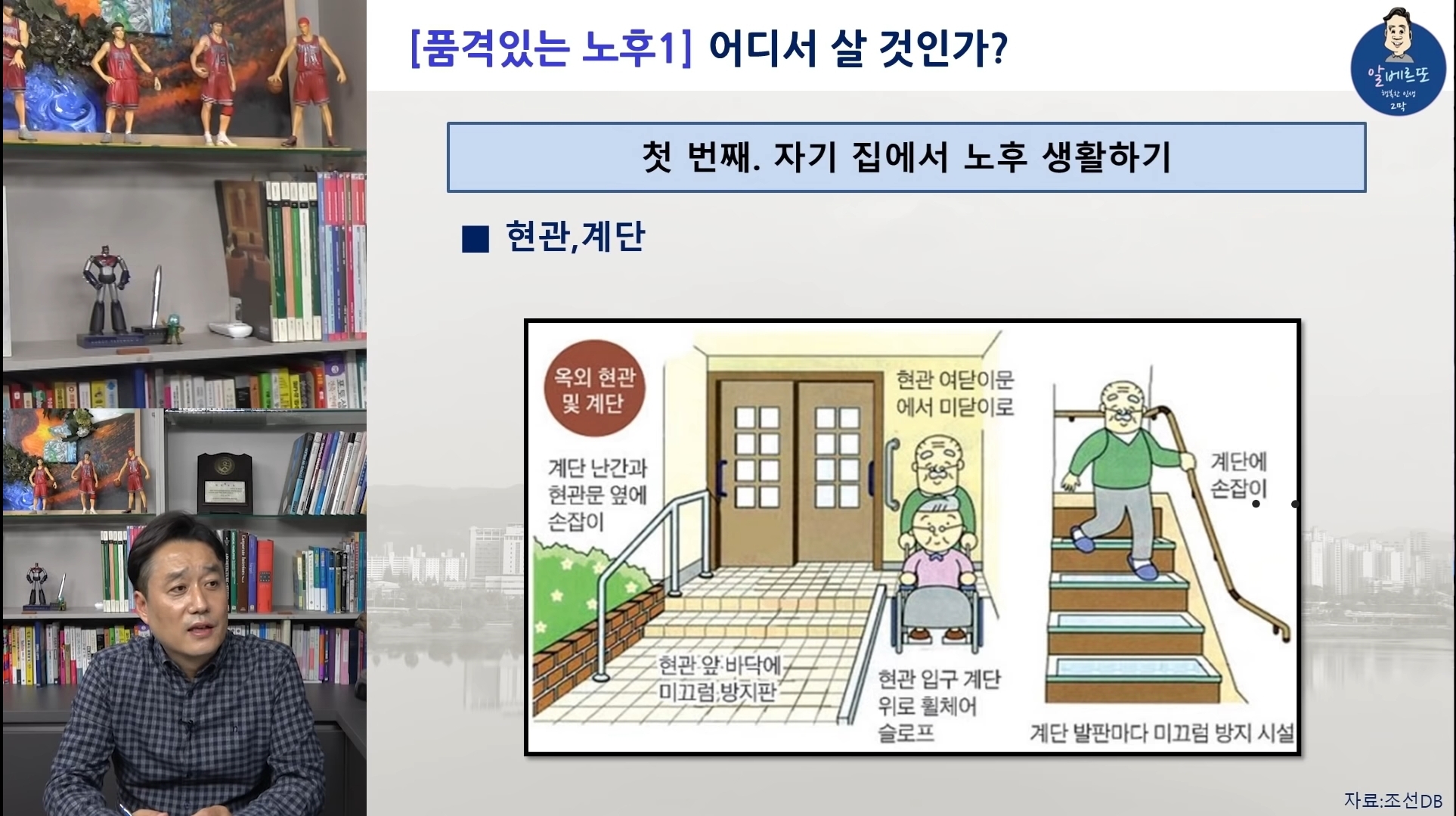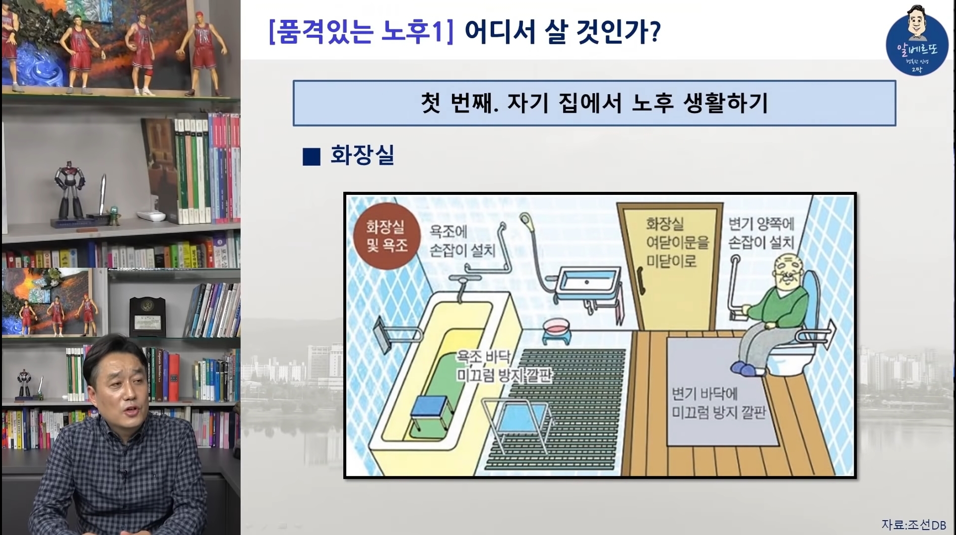 그렇다면 돌봄 대상자, 그 중에서도 신체 건강이 약화되고, 질병과 상해에 취약한 노년층이 살아갈 수 있는 거주지의 조건은 무엇일까? 자료를 찾던 중에 노후 생활에 대한 정보를 제공하는 '알베르또 행복한 인생2막'이라는 유튜브 채널에 잘 정리되어 있어 공유하고자 한다.