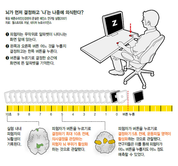 역시 "뇌는 우리가 결정을 내리기도 전에 무엇을 결정할지 미리 알고 있는 것일까?"